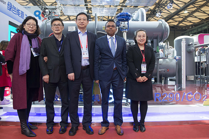 在生态觉醒的时代,冰轮基于对环境法则的领悟,秉承对绿色发展的向往,坚守对生态文明建设的一份初心,坚持走“追清逐绿”之路。本届展会,冰轮推出的多款创新产品,全部采用对臭氧层无破坏、温室效应低的二氧化碳、氨、碳氢化合物等天然环保工质,处处透映冰轮“人与环境和谐共生”的环境理念。从承担联合国多期“替代含氢氯氟烃类工质示范项目”伊始,到推进环保制冷技术在我国冷冻冷藏行业的规模化应用,再到荣获联合国“保护臭氧模范企业”、“蒙约三十周年模范企业”等荣誉,乃至本届展会推出的向化工工艺冷却领域拓展的R290/CO2载冷机组,冰轮探索了一条工商制冷行业工质替代的道路,并且在这条绿色发展的道路上走的义无反顾,彰显了一个行业领军者的责任感与社会担当。