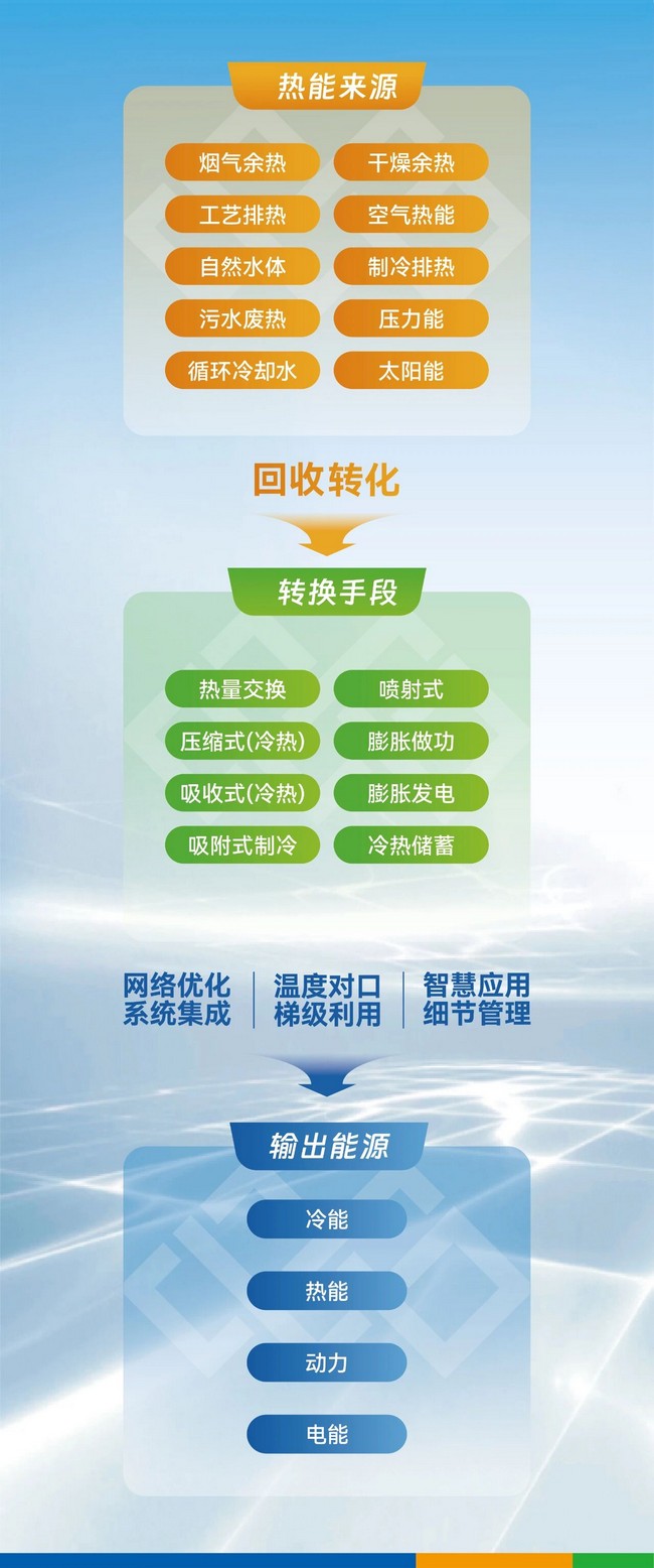 工业全域智慧热控解决方案,依托多能耦合系统设计与多源多级综合利用,实现了-35℃~600℃超宽温域热源的高效回收利用,有效破解复杂离散余热场景中能质匹配与梯级利用难题,为构建工业场景下的零碳能源模式提供了强力的技术支撑。
