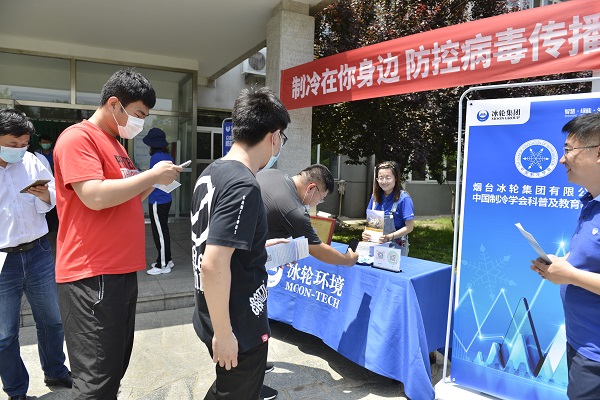 中国制冷学会·科学普及网 6月15日讯 6月11日,冰轮集团作为中国制冷学会科普及教育基地组织开展“制冷在你身边 防控病毒传播”主题活动,冰轮环境党委副书记、科普基地主任董大文带领冰轮职工,走进只楚园区分发资料宣传家用空调自助清洗的相关知识。